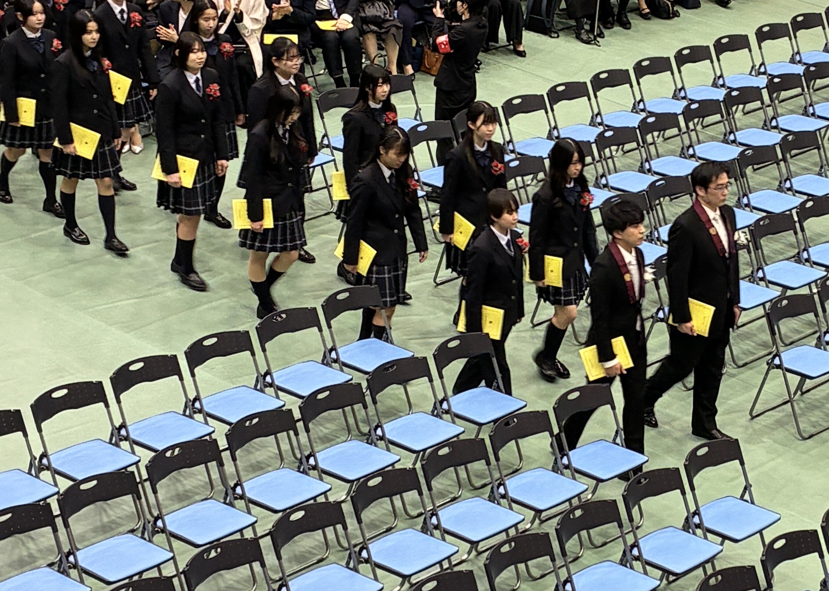 壇上で卒業証書を受け取る各クラスの代表生徒たちの表情からは、達成感と寂しさを感じつつも未来に向けて新たな一歩を踏み出そうとする力強さが感じられました。